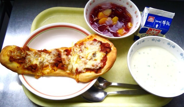 ピザ&カレーナントースト じゃがいものポタージュ ブドウゼリーポンチ