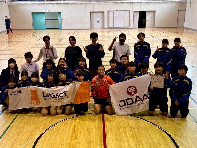 今年はデフリンピック(デフアスリートのための国際的な総合スポーツ競技大会。デフDeafは、英語で「耳がきこえない」という意味。競技中は補聴器などを外して、全員が公平にきこえない立場で競技する)東京大会が開催されます。本日はデフアスリート(陸上短距離)の佐々木琢磨選手をお迎えして、2年生がデフ陸上体験授業を行いました。デフリンピックや競技についての説明の後、実際にスタートランプを使用した体験を行いました。