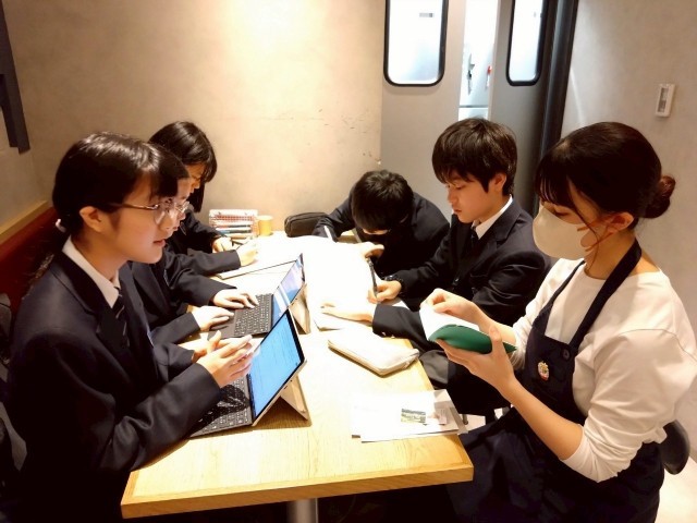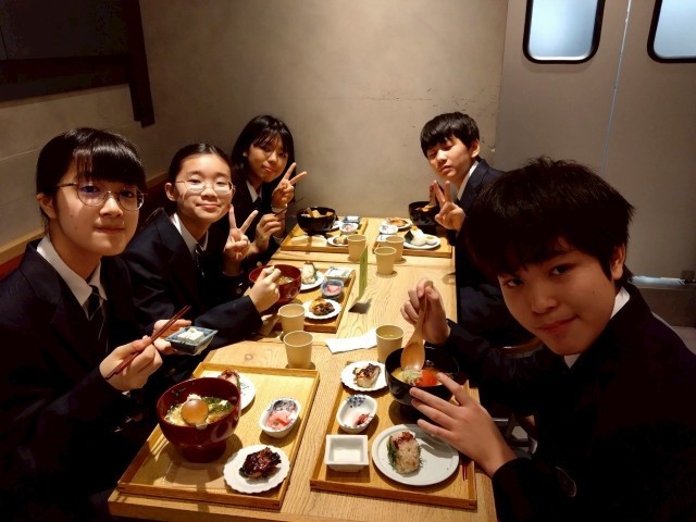 2年生1班はMISOJYU(おみそ汁専門店)でのインタビューと昼食です。和食器や和食を探究しています。