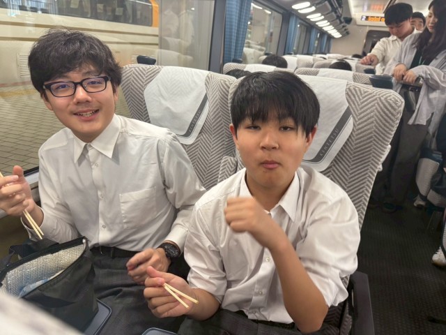 乗り換えも終わり、近鉄特急で景色を見ながら昼食です。