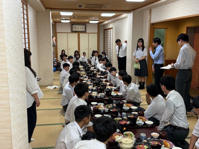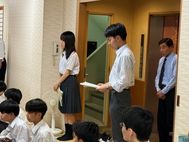 夕食前にお世話になる宿舎「京の宿 魚岩旅館」の方にご挨拶をいただきました。