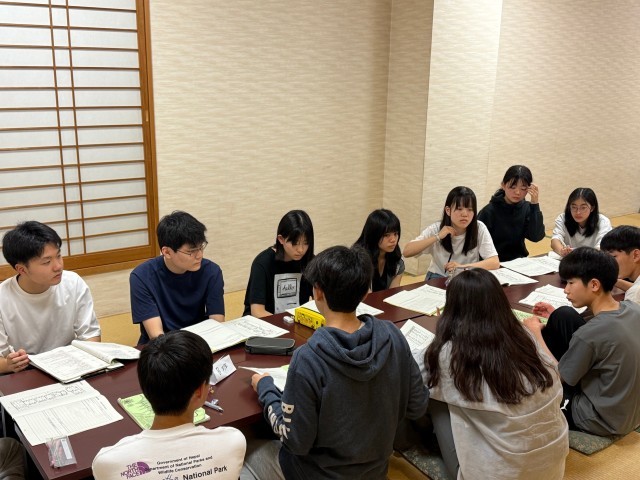 休憩時間も終わり、室長、班長、実行委員が大広間に集まり本日の反省を出しながら明日に向けて話し合いを行っています。