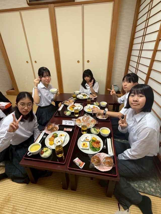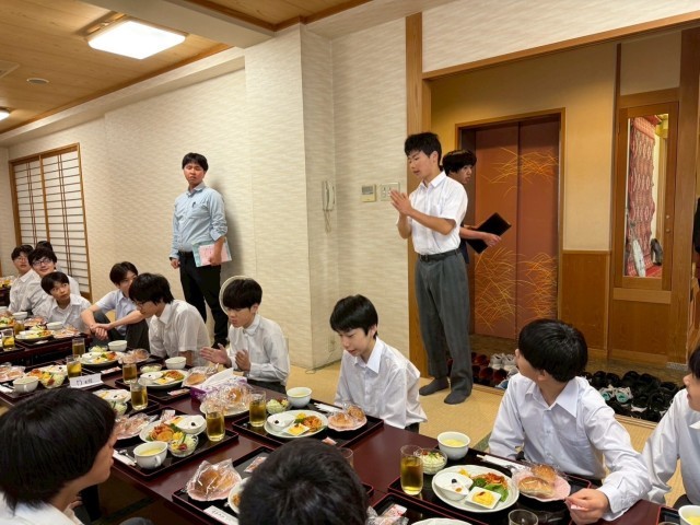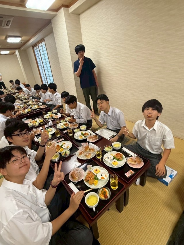 3年生修学旅行の2日目を迎えました。まずは朝食からスタートです。天気は快晴!現在は快適な気温ですが午後は気温が上昇することが予想されます。水分補給についてもしっかり説明を聞いていました。