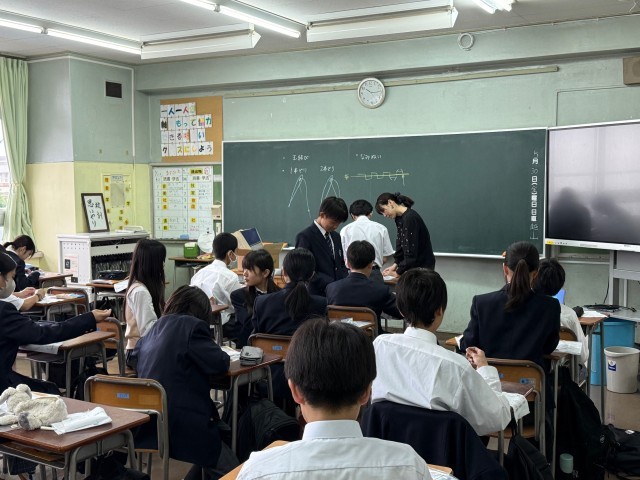 1年生の技術・家庭の様子です。上から1年1組家庭、1年2組技術です。家庭科では裁縫について積極的に先生に質問し、教わっていました。