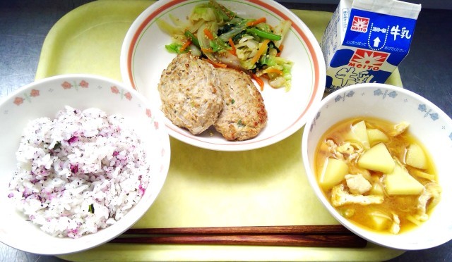 梅若ごはん いわしのつくね 野菜のごましょうゆ 赤だし味噌汁