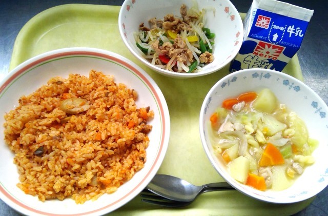 焼肉サラダは、お肉が入っていて野菜も食べやすく、広尾中の人気の一品です。レンズ豆は健康食品としても注目され、世界三大美女エジプトのクレオパトラも食べていたといわれています。