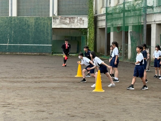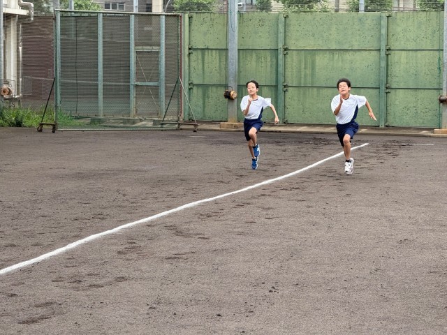 関東地方も梅雨入りし、雨こそ降っていないものの蒸し暑い日となりました。本日の1年2組体育の授業の様子です。広尾高校の校庭をお借りして50m走とハンドボール投げに取り組みました。