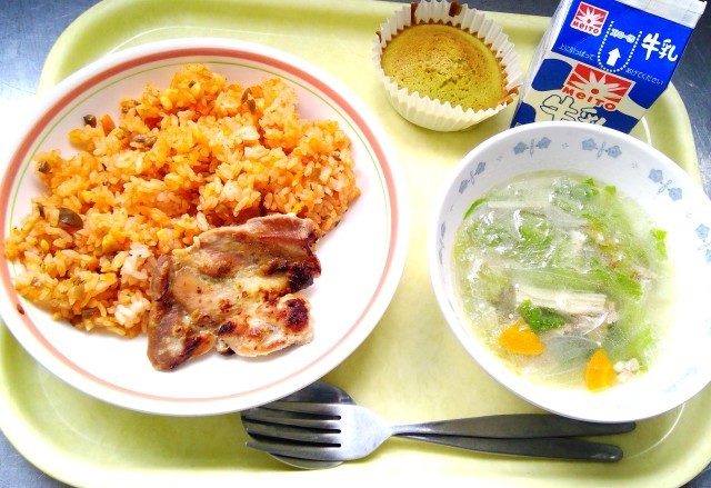 ケチャップライス チキン添え レタスのスープ 明日葉のパウンドケーキ