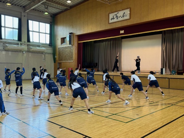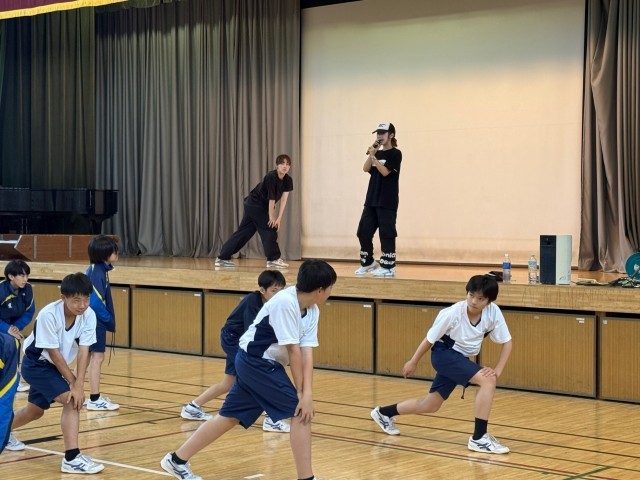 今年もEXILE、三代目 J SOUL BROTHERS、GENERATIONS等のアーティストが所属するLDHから2名の講師に来校していただき、1年生を対象にダンス教室を行いました。気温が上昇し、暑い日となりましたががんばって取り組みました。