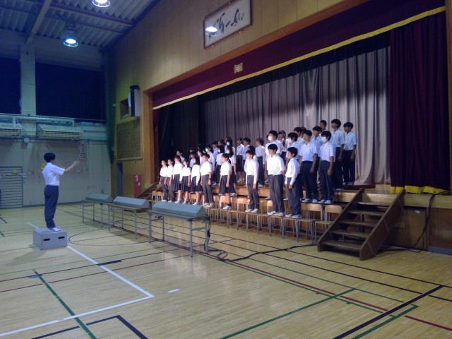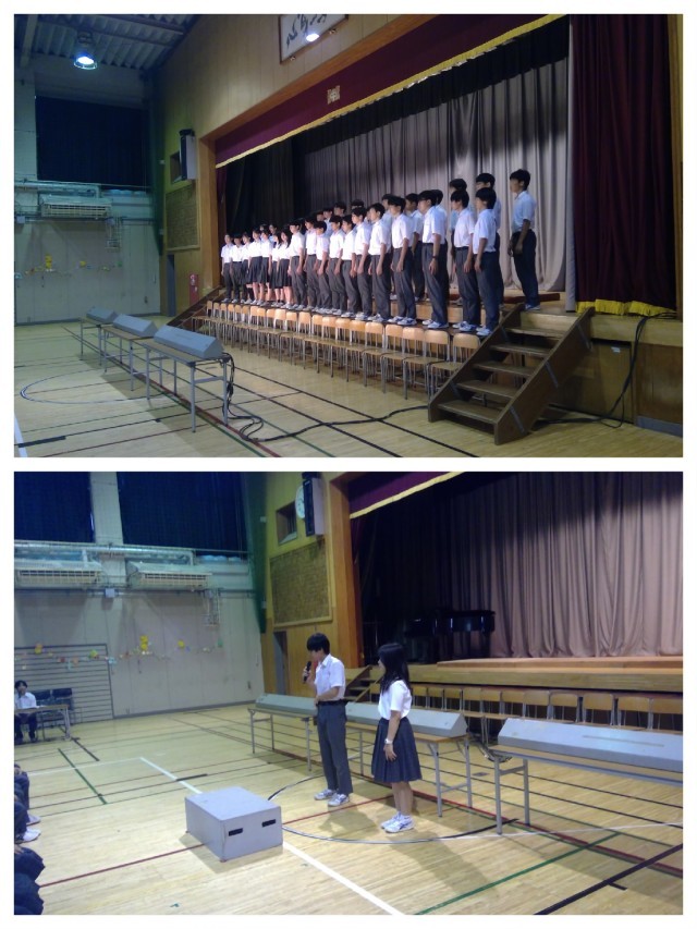 HIROO祭のリハーサルに続いて、若木祭合唱コンクールのリハーサルを行いました。各学年とも入退場の練習・確認と課題曲の披露です。本番までほとんど練習時間が残っていないところですが、どのクラスも全力を尽くしてほしいと思います。合唱リハ後の恒例となっている3年生からの講評も素晴らしい内容でした。