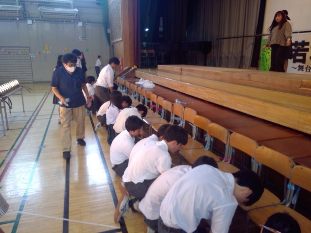 いよいよ若木祭前日となりました。午後は全学年で会場準備や清掃です。どの学年も一所懸命に各自の仕事に取り組んでいます。