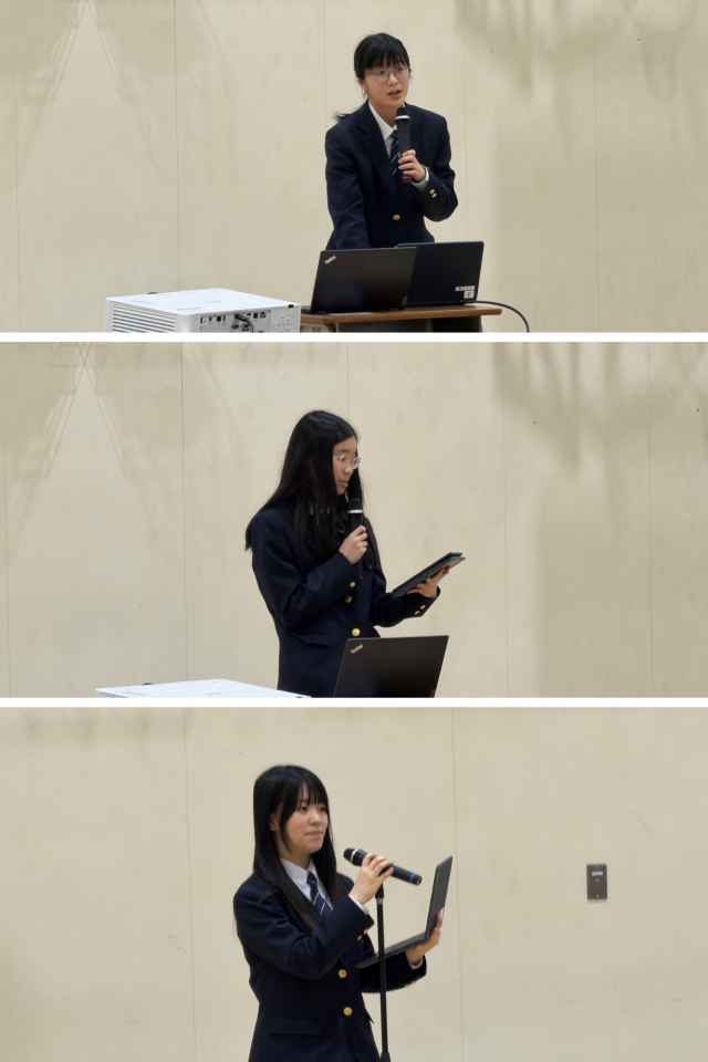 新入生歓迎会の楽しみは何といっても部活動紹介です!どの部活動もがんばって準備してくれました。写真は吹奏楽部、美術部、卓球部です。