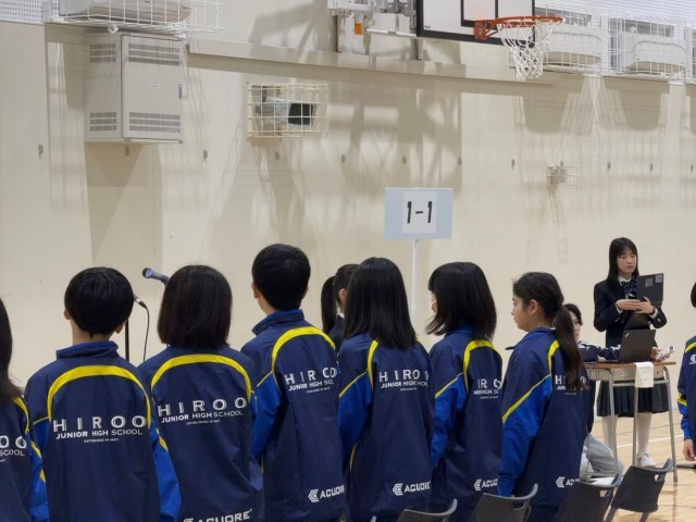 本日は、学校生活オリエンテーションとして、学校生活を送る上での決まりや約束事等について、生徒会本部役員、専門委員会旧委員長から説明がありました。1年生は広尾中での生活について理解を深めてもらい、2年生と3年生も改めて生徒会や各委員会の活動状況や決まりについて知る良い機会となりました。説明をしてくれた代表生徒の皆さん、ありがとうございました。