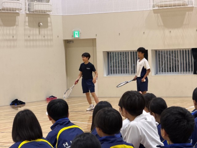 本日は全校朝礼からスタートしました。1年生入学後、初めて全校生徒が一堂に集まりましたが、3年生や2年生が素早く整列し、1年生の良いお手本となってくれました。また、全校朝礼後はバドミントン部の表彰を行いました。渋谷区シングルス選手権大会女子の部優勝という素晴らしい成績です。おめでとうございます!!