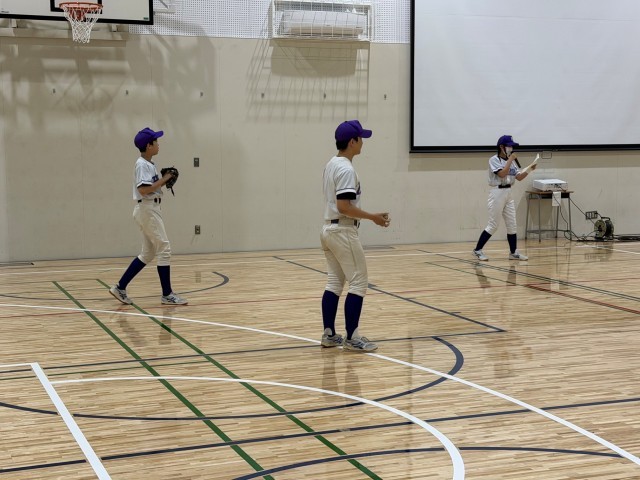 新入生歓迎会の部活動紹介、上からバドミントン部、ソフトテニス部、野球部です。1年生は来週13日(月)から体験入部が始まります。今日の部活動紹介を参考にいろいろな部活動を体験しながら部活動を決めてください。