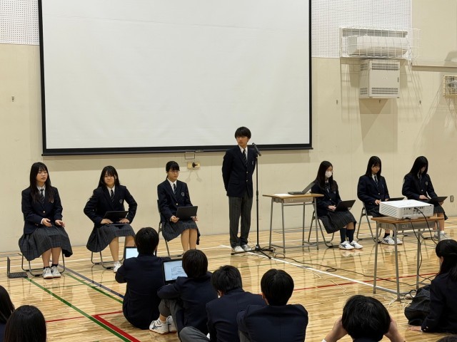 本日は、学校生活オリエンテーションとして、学校生活を送る上での決まりや約束事等について、生徒会本部役員、専門委員会旧委員長から説明がありました。1年生は広尾中での生活について理解を深めてもらい、2年生と3年生も改めて生徒会や各委員会の活動状況や決まりについて知る良い機会となりました。説明をしてくれた代表生徒の皆さん、ありがとうございました。