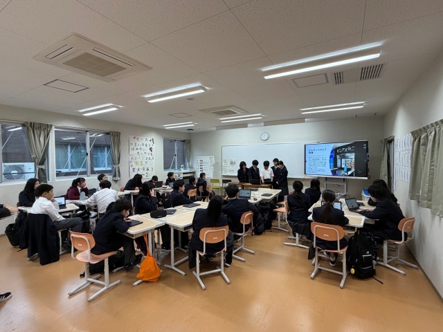 1年生は4月21日にNTT e-cityLaboに校外学習に出掛けましたが、本日は事後学習のクラス内発表を行っていました。プレゼン資料も時間が少ない中でよく作成されており、班ごとに一生懸命に発表している様子が大変良い発表会でした。