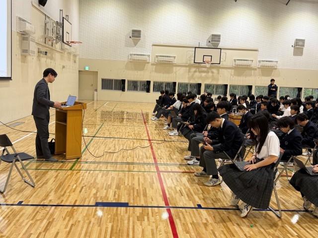 本日はネットリテラシー教育の一環として、NTT DATAの坂井謙太様を講師にお迎えし、セーフティ教室を実施しました。話題になっている炎上騒動やSNSでの被害防止等について、個人やペアワークを通して学びました。使い方によって便利なツールにも、人を傷つける凶器にもなりうるインターネット・SNSについて、正しい知識や使い方を身につけてほしいと思います。