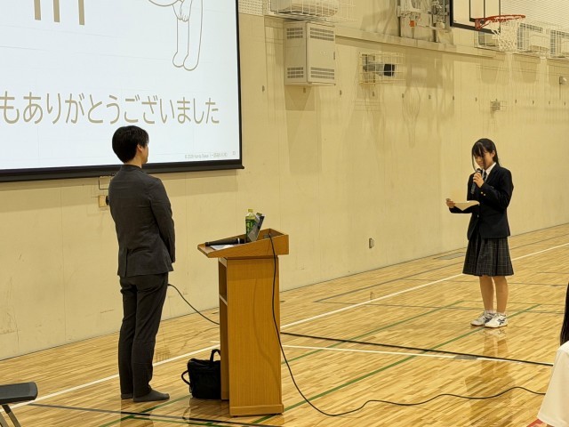本校の探究シブヤ未来科テーマプロジェクトで2年間連携させていただいたBリーグプロバスケットボールチーム・サンロッカーズ渋谷が、4月25日(土)及び4月26日(日)をもって、現在のホームコートである青山学院記念館でのラストゲームを迎え、今後は江東区にあるTOYOTA ARENA TOKYOに本拠地を移します。これまで、現在高校1年生の卒業生が本校在籍中、中学生にサンロッカーズ渋谷の知名度を上げるため、また、サンロッカーズ渋谷とともに社会貢献をするために探究学習に伴走していただきました。さらに、#77 大森康瑛選手には学校に来校していただき、生徒のプレゼンを聞いていただくとともに、バスケットボールで生徒と交流をしていただきました。