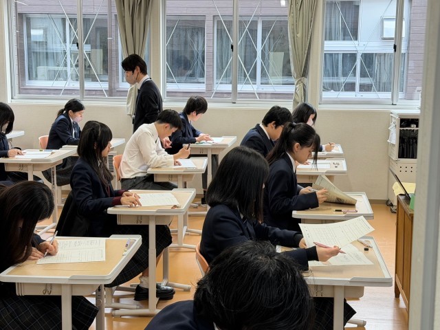1年間のまとめ、期末考査が始まっています。入試が終わっても教科書や参考書を片手に登校する3年生の姿が印象的です。どの学年の皆さんも、最後まであきらめず全力がそれぞれの教科にがんばってください。
