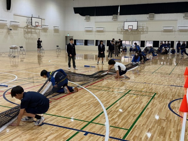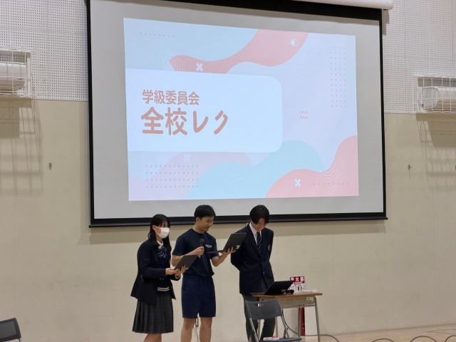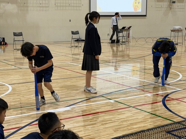 3年生の卒業が刻一刻と迫っています。3年生との絆を深め、思い出を作ろうと1年生から3年生までの学級委員会が全校レクリエーションを企画してくれました。ネットをくぐり、ぐるぐるバットを回ってクイズに回答するという内容でしたが、全校生徒が一生懸命に取り組み、熱く盛り上がる素晴らしい機会となりました。企画に尽力した各学年の学級委員の皆さん、お疲れさまでした!