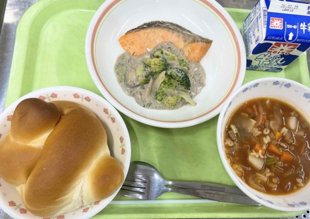 ミルクパン 鮭のステーキクリームソース ABCトマトスープ