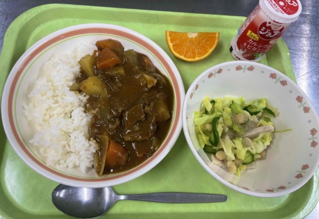 今日は今年度最後のカレーになります。ちょっとリッチにビーフカレーになってます。今回は、野菜ゴロゴロタイプのカレーになっています。