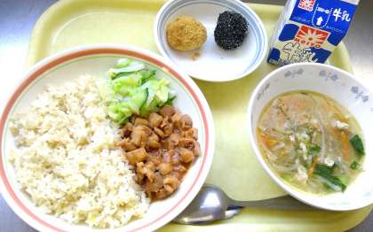 こぎつねごはんも給食のひそやかな代表料理のひとつで、人気の一品です。小さく切った油揚げが入っていることから命名されたといわれています。