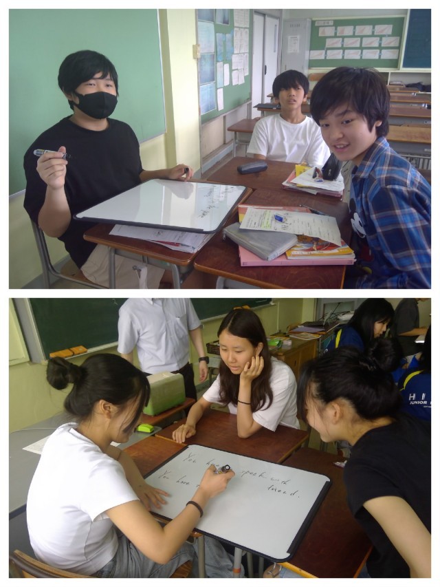 本日は2年生が英語の研究授業に取り組みました。「What is important in a homestay?」を教材にして、have to、don't have toの助動詞を中心に授業が展開されました。協働的な学びでは、グループで学校の新しいルールを考えるに挑戦し、班ごとに発表して終わりました。2年生の前向きな姿勢がよく見られた授業でした。なお、本日はカジュアルデイズの2日目です。2年生もTPOを意識した爽やかな私服を着ています。