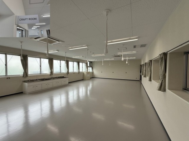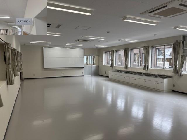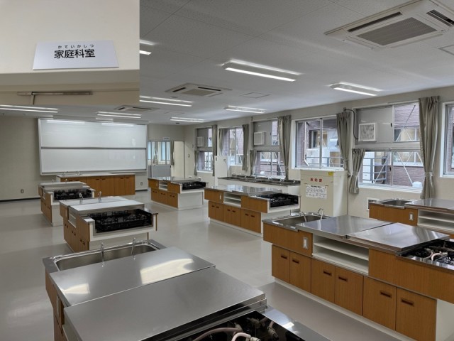 特別教室の続きです。写真1枚目は美術室です。位置はB棟3階で松濤中が生活しているエリアになります。写真2枚目は家庭科室です。位置は2階の令和8年度から神南小が生活するエリアになります。マナーよく教室移動をするようにしましょう。