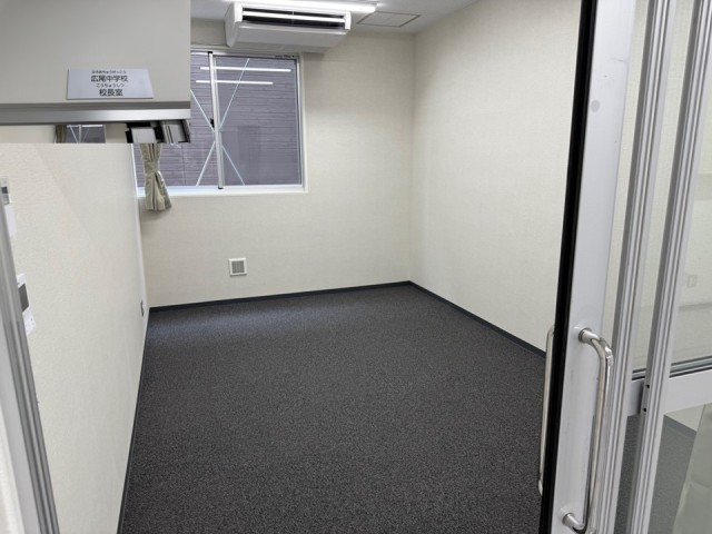 写真1枚目は中学校職員室です。松濤中と広尾中が同じ職員室を使います。目印は赤いカーペットです。中学校職員室の向かいには小学校職員室があります。写真2枚目は広尾中校長室です。校長室の隣には共用応接室、さらに隣には松濤中校長室があります。写真3枚目は広尾中保健室です。広尾中の皆さんは第二保健室を使います。職員室、校長室、保健室とも場所は1階です。