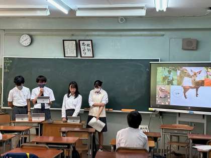 本日は3年生が、夏休み中から修学旅行の事後学習として作成してきたプレゼン資料を使用して、2年生に関西方面の魅力についてプレゼンを行いました。テーマは、「ここがすごい!!惹きつけられる理由を世界中の子供たちに伝える」です。懐かしい写真の数々とともに、凝ったスライドは見ごたえがありました。