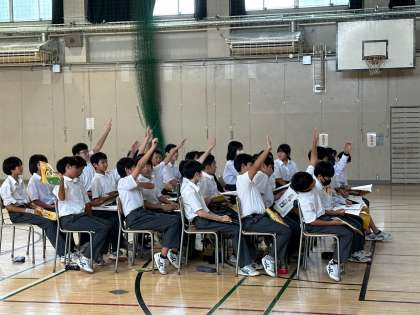 いよいよ区陸が明日に迫りました。本日は、代表選手を激励する壮行会を行いました。選手の皆さんは全力で競技に取り組み練習の成果を発揮してください。また、応援団の皆さんもこれまでの応援練習お疲れさまでした。明日は選手、応援一丸となった「チーム広尾」としてがんばりましょう!!