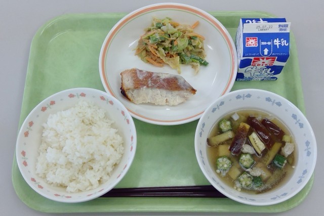 汁物には、夏野菜を入れ、隠し味に生姜を加えて、さっぱりと食べられる豚汁を作りました。しっかり食べて、夏休みまであと少し、元気に過ごしましょう。