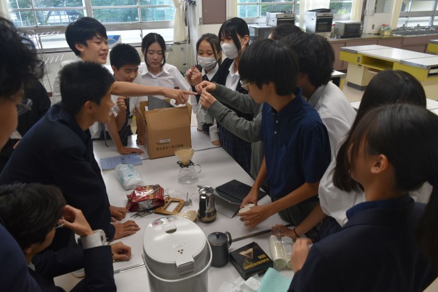 3年生は、「わたしたちができる世界のこと」をテーマに、フェアトレードのコーヒーをどう販売するかに取り組んでいます。今日は、販売チームがコーヒーの極上のいれ方を研究していました