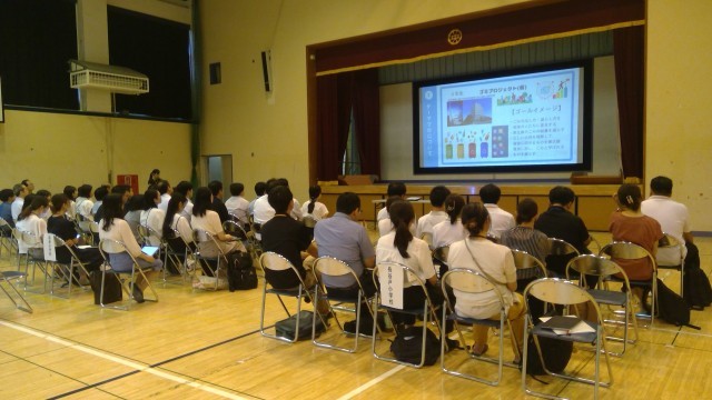 7月16日(水)、「小中連携の日」の今日、鉢山中のテーマ探究の授業を猿楽小、長谷戸小の先生方に見ていただきました