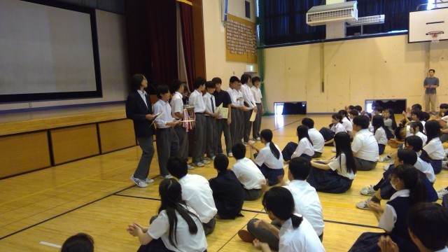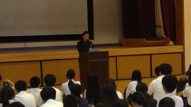 また、7月5日(土)にあった社会環境を明るくする渋谷区のつどいで作文を発表した生徒が校内でも作文を読んでくれました