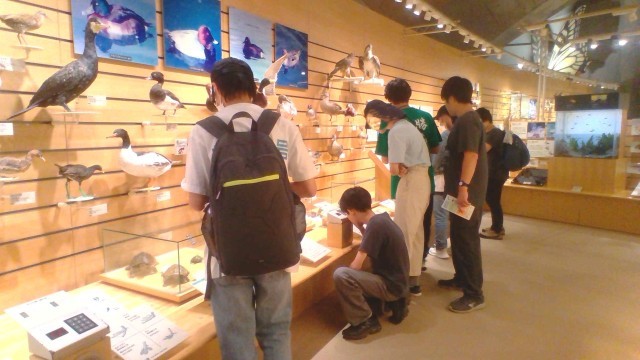 本日のメニューは、群馬県立自然史博物館。恐竜や動物、草花、海、空、大地、と人類や自然の生命の源や変化がダイナミックに展示されています。子供たちは興奮気味に見たり、触ったり。とてもいい博物館です
