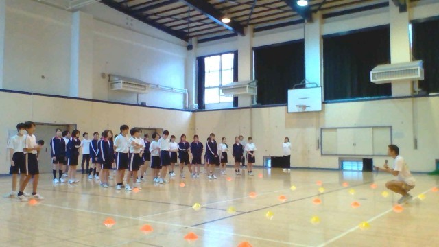 今年は、「アスリートから学ぶ正しい走り方講座・実践~東京2025世界陸上~」プログラムを選択し、陸上競技の走り方を全校生徒が体験しました。もちろん、ねらいは「区陸」です