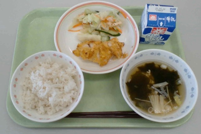 付け合わせのサラダには、広島県の給食レシピの「ドレみそ♪レモン」というメニューを参考にしたドレッシングをつくりました。味噌とレモンの甘酸っぱい組み合わせが、不思議と後をひくおいしさです。楽しんで食べてくださいね。