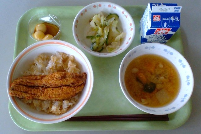 さて、今日は、十五夜に合わせて秋の味覚を楽しむ献立を作りました。蒲焼にしたサンマは、生で出回る期間が約1か月と短い、旬の魚です。また、和え物には、10月半ばまでが旬の「シソの実」を使いました。青じそとはひと味違う香りが特徴です。デザートには、みたらし味のお月見団子を作りました。秋の味覚と一緒に、交流給食を楽しんでくださいね。