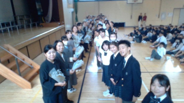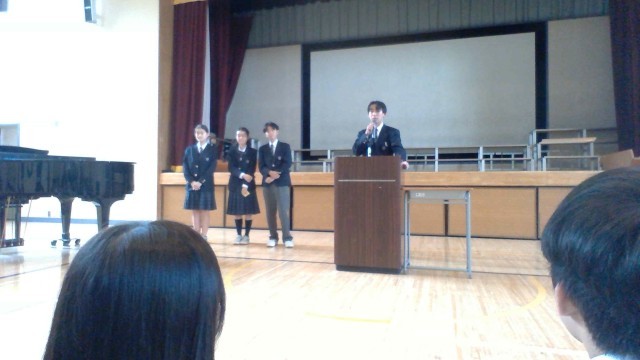 終業式では、旧生徒会役員5人が退任の挨拶をし、生徒会役員活動を通して考えたこと、身に付けたこと、学校への思いを語りました