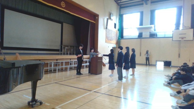新生徒会役員の任命式では、改めて抱負とともに、一年間の活動への意欲を述べていました