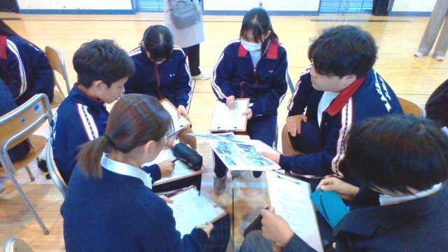 実際の街の様子の写真から、自転車の乗り方で○か×か、どうして×なのか、どうすれば〇になるのかをグループワークで考えました