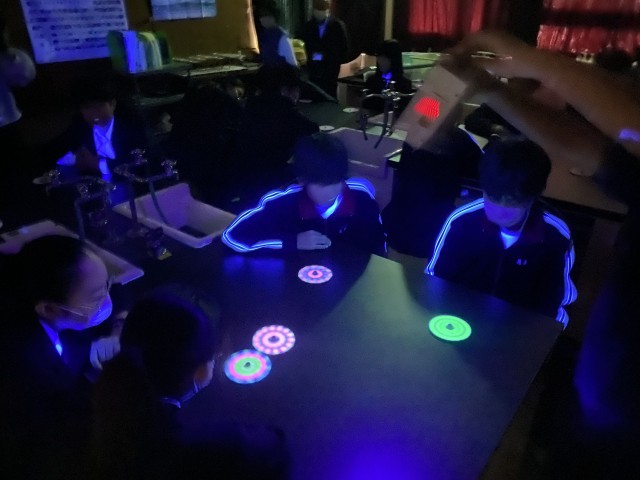 コマが完成したら、教室を真っ暗にしてみんなで暗闇コマ回し