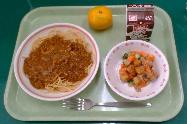 今日の給食は、ミートソースのスパゲッティと、旬のサツマイモを使ったサラダの献立です。さつまいもは大きめの角切りにし、給食室でゆっくり揚げて、カリカリホクホクの食感に仕上げてもらいました。なお、今年の夏は猛暑や水不足が深刻だったため、サツマイモの不作が予想されていましたが、今日はとても大きくて立派なお芋が届き、ひと安心でした。旬の味を楽しんでくださいね。