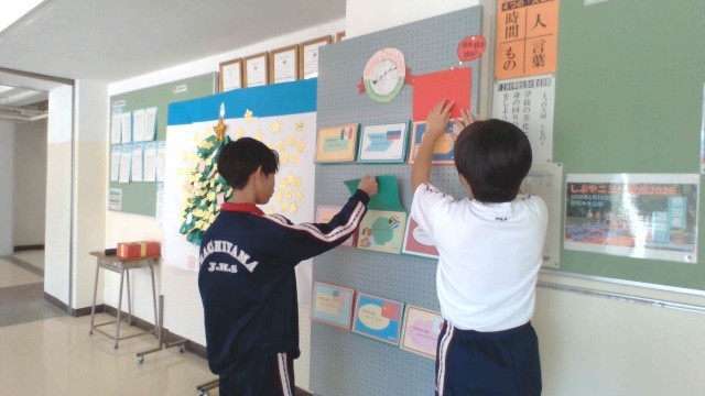 クイズの正解は生徒玄関に掲示してくれている「世界の国からMerry Christmas」にあります