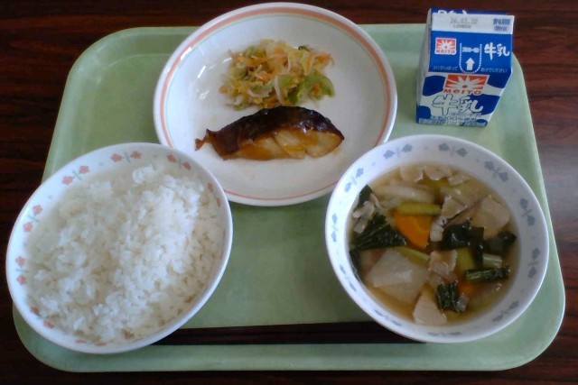 今日の給食は、お魚がメインの和風献立です。料理名の「幽庵」は、江戸時代の茶人、「北村祐庵」の名前からとられたと言われています。「幽霊」と同じ字が使われていて不思議な印象ですが、これは、茶人として使う別名「号(ごう)」として、名前と同じ読みの漢字で「幽」の字を用いていたことによるようです。ちなみに、平安時代には、和歌や美術に対し、趣深いことや品の良いことを評する「幽玄(ゆうげん)」という言葉があったため、今とは印象が違ったしれませんね。和食の料理名には、ほかにも「利休(りきゅう)焼き」や、「織部(おりべ)焼き」など、茶人の名前からとられたものがいくつかあります。調べてみてくださいね。