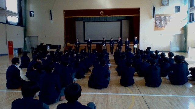 着任式では、転入した教職員の紹介と挨拶で、生徒たちは新たな出会いにワクワク感でいっぱいです