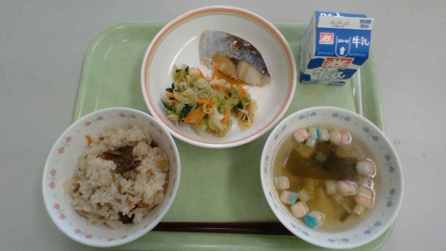 4/15(水)の給食 公開日 2026/04/17 更新日 2026/04/17 給食日記 <今日の献立>・牛肉とごぼうのご飯・鰆の照り焼き・キャベツのおかか和え・若竹汁・牛乳今日は肉あり、魚あり、野菜あり、旬あり、のハッピー献立さて、問題です。今日の旬は何でしょうかわかめ、たけのこ、キャベツ、と、もう一つヒントは漢字にありますあ~、春だなぁ